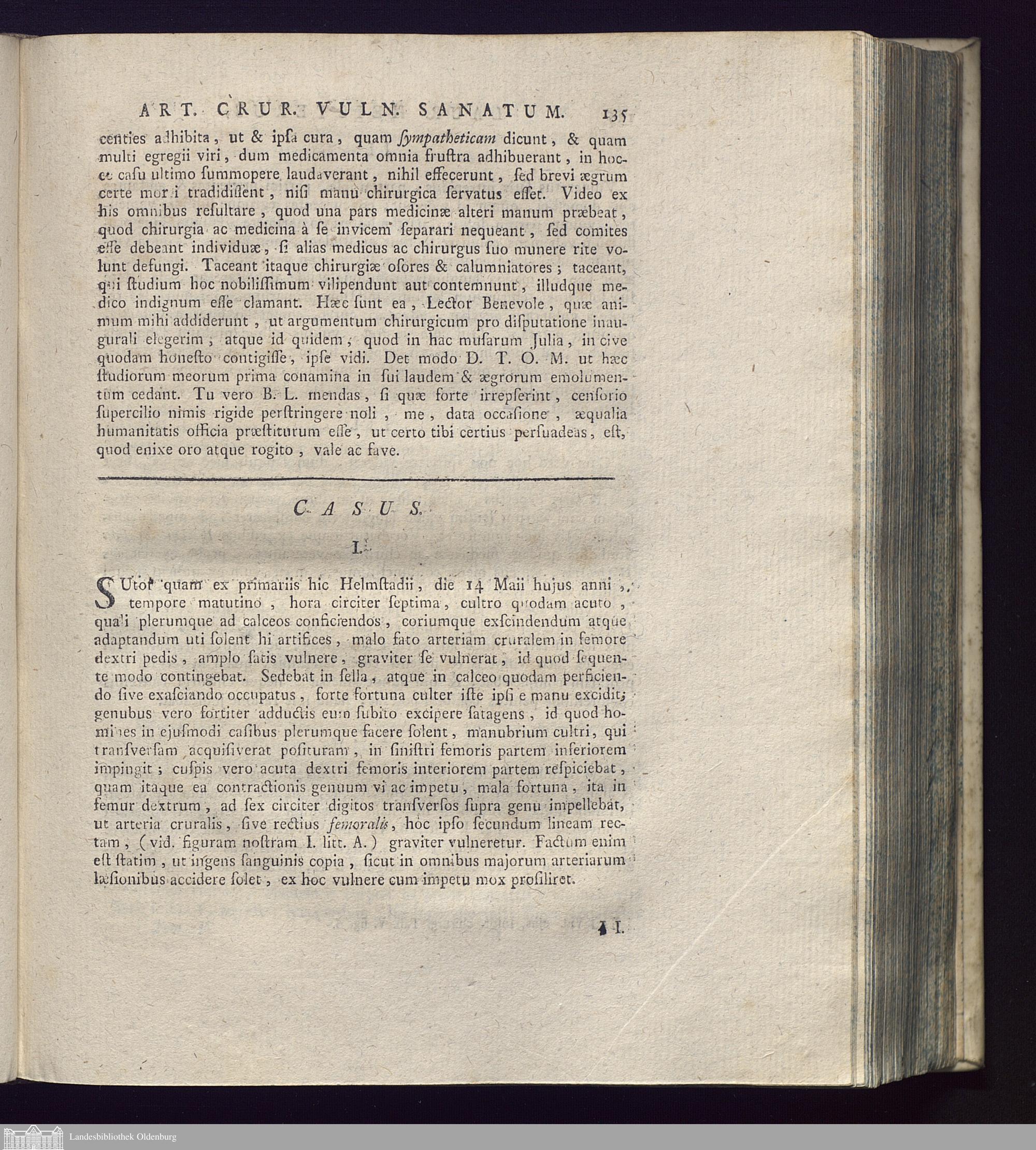 CXXXII. Dissertatio Chirurgica, De Arteriae Cruralis Vulnere Periculosissimo Feliciter...
