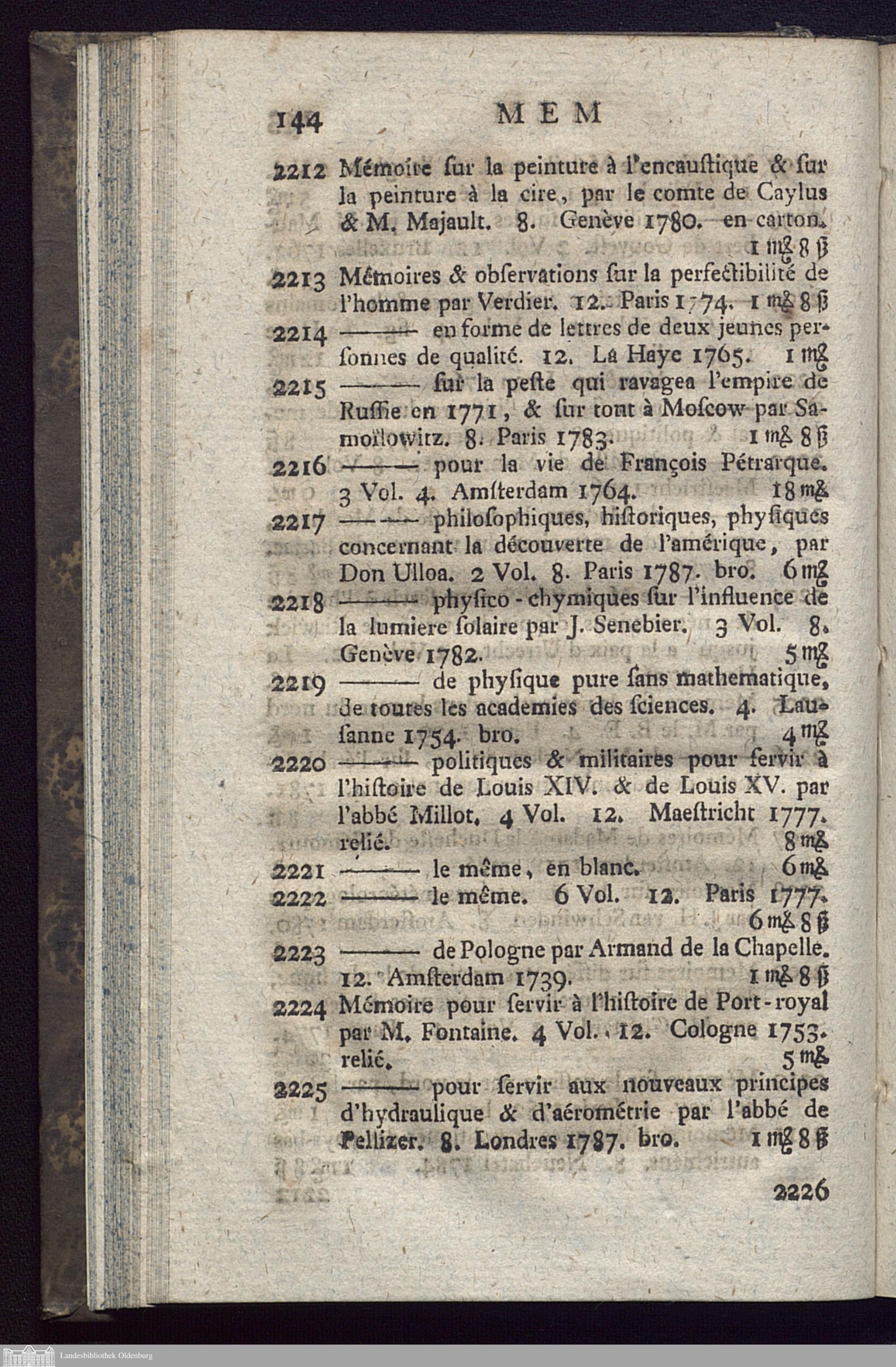 Catalogue Des Livres françois, anglois, italiens et latins, qui se trouvent chez Pierre François Fauche et Comp: Imprimeurs-Libraires à Hambourg et Brunswig