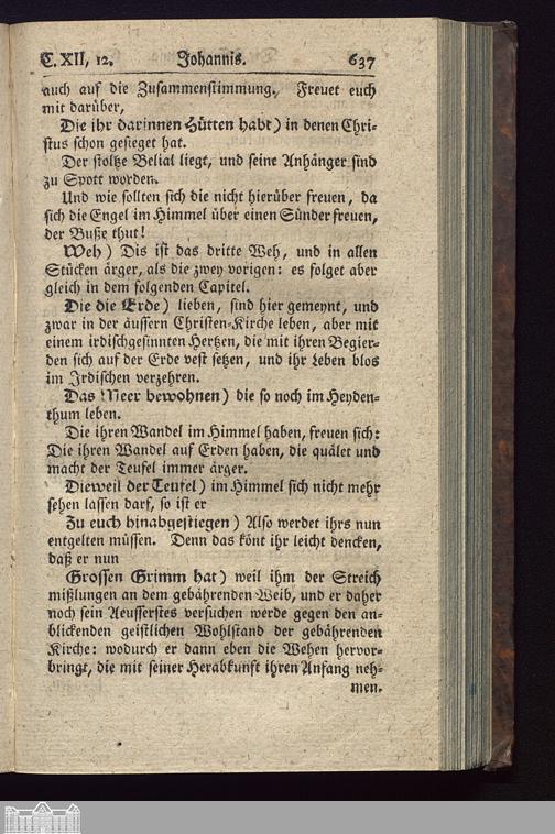 Das XII. Capitel. Das gebährende Weib: der Streit Michaels und des Drachen, der seinen Zorn gegen das Weib und ihren Saamen ausläßt.