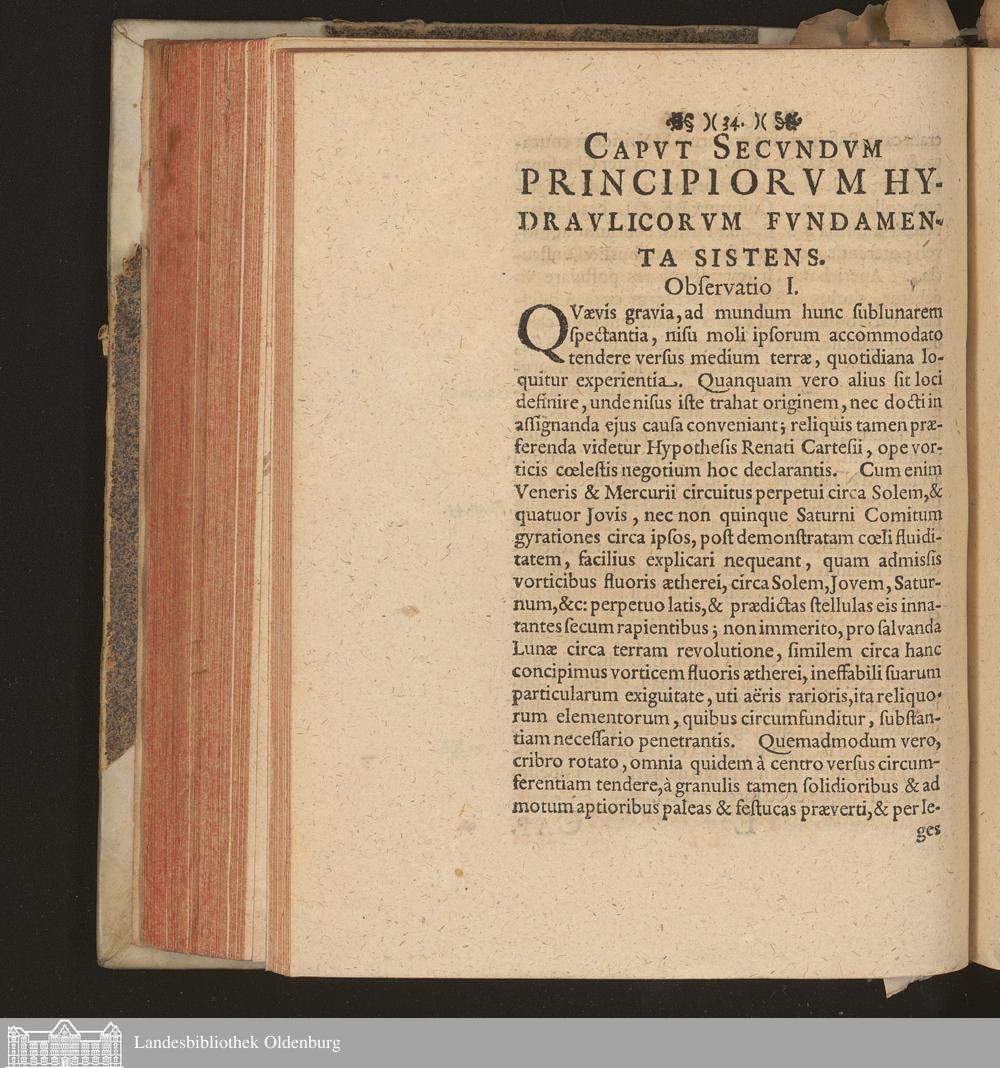 Capvt Secvndvm Principiorvm Hydravlicorvm Fvndamenta Sistens.