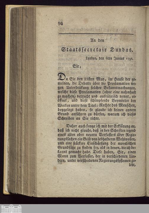 Theil 3 (1793) Sendschreiben an die Unterzeichner der Adressen über die letzte Proclamation, nebst einigen Briefen an Dundas, Onslow und das französische Volk