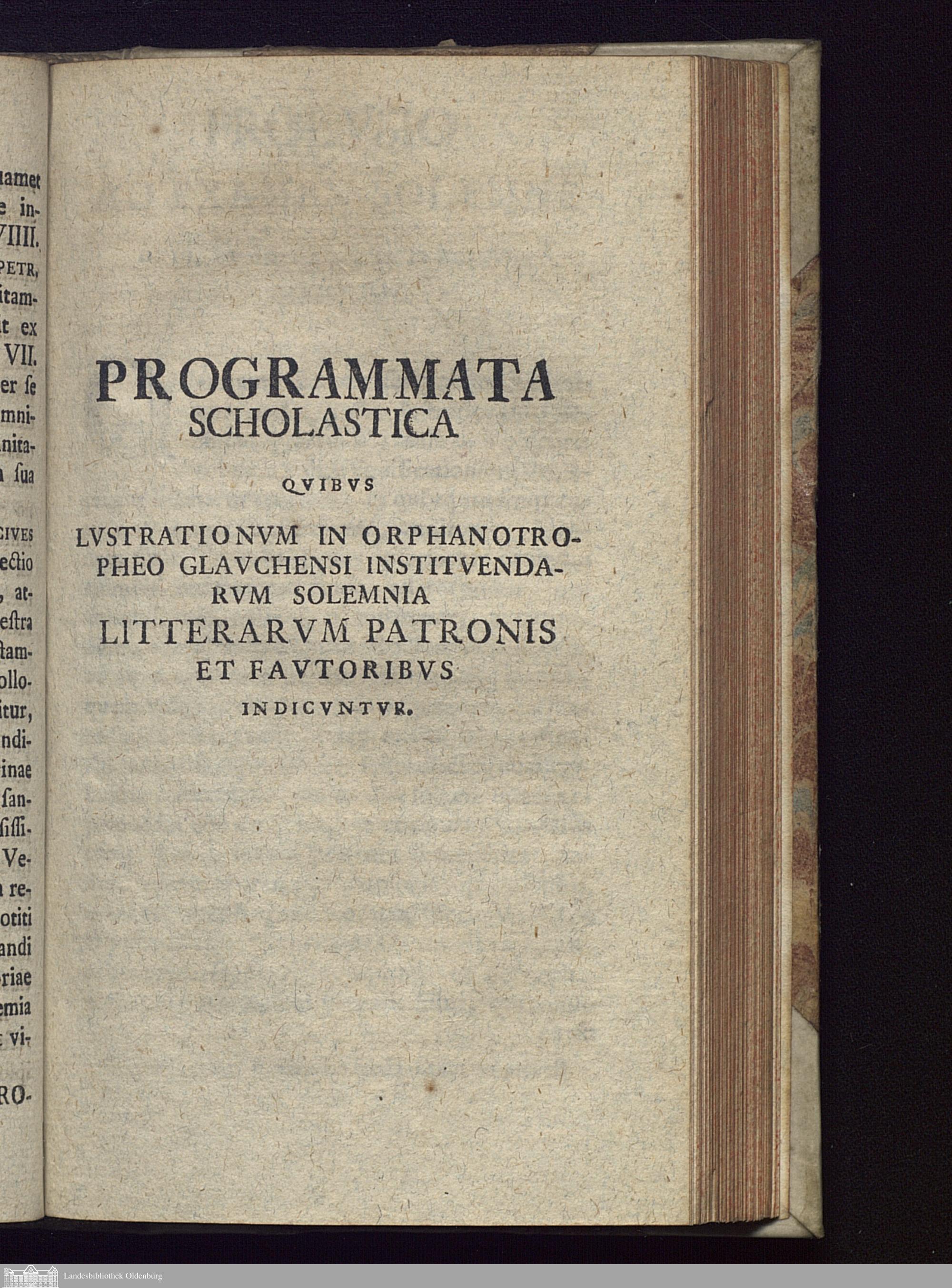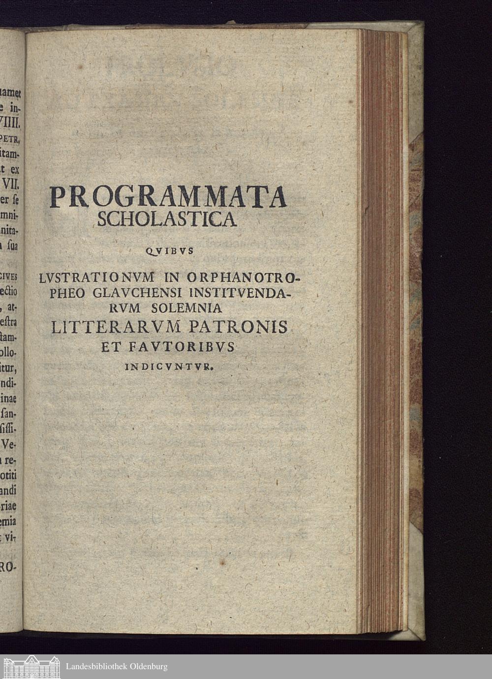 Programmata Scholastica Qvibvs Lvstrationvm In Orphanotropheo Glavchensi Institvendarvm...