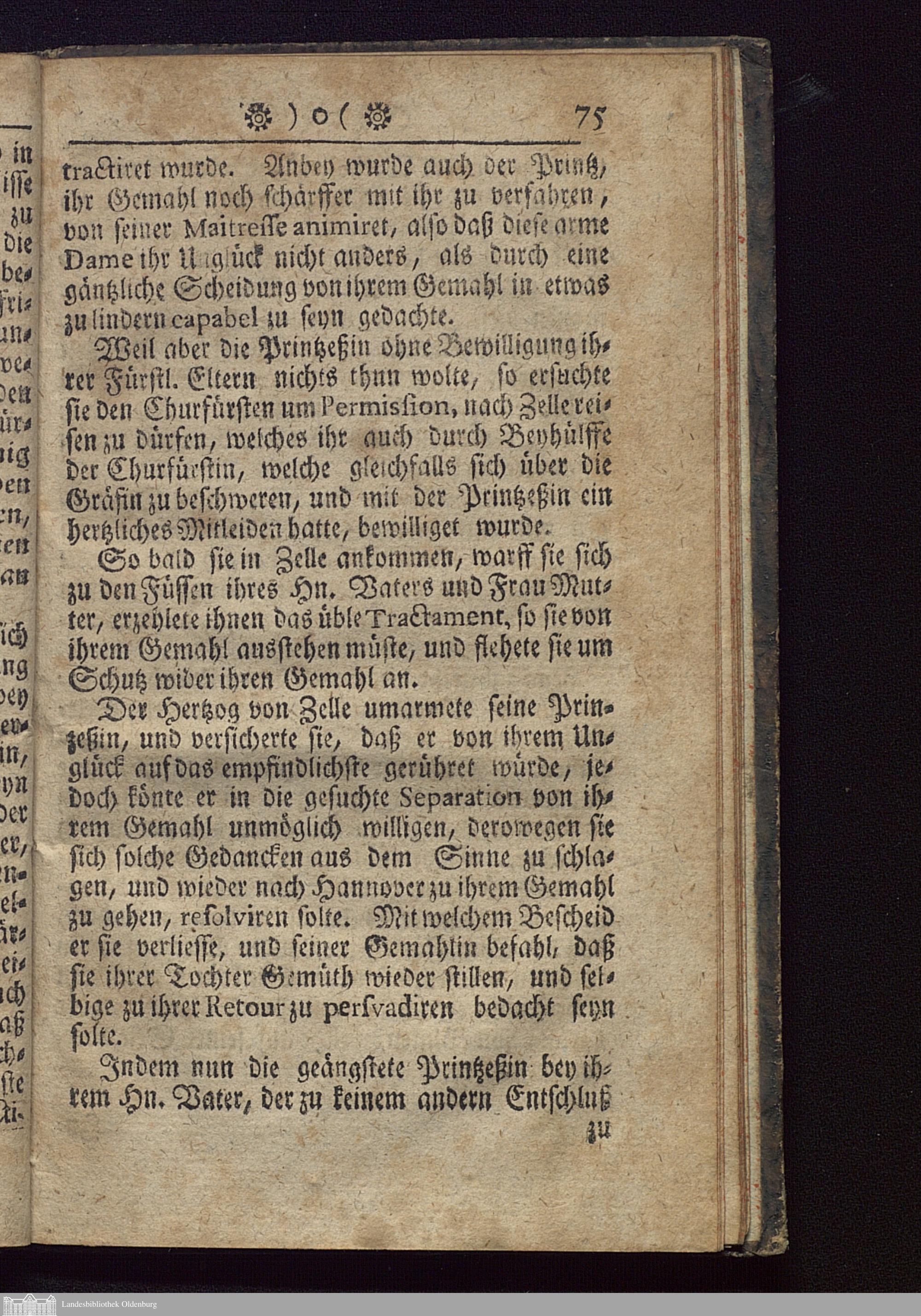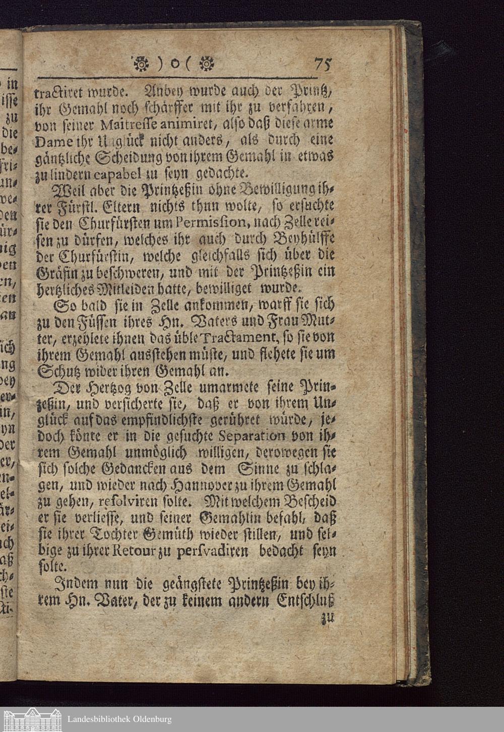 Lebens-Beschreibung Der Hertzogin von Hannover : Worinnen dieser Prinzeßin wunderbares Schicksal in der auf dem Schlosse Ahlen bis an Ihr Ende verharrenden Einsamkeit mit beygefügten Fatalitaeten des verunglückten Grafen Königsmarck enthalten / Aus dem Französischen ins Teutsche übersetzt
