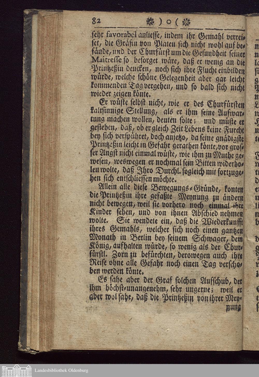 Lebens-Beschreibung Der Hertzogin von Hannover : Worinnen dieser Prinzeßin wunderbares Schicksal in der auf dem Schlosse Ahlen bis an Ihr Ende verharrenden Einsamkeit mit beygefügten Fatalitaeten des verunglückten Grafen Königsmarck enthalten / Aus dem Französischen ins Teutsche übersetzt