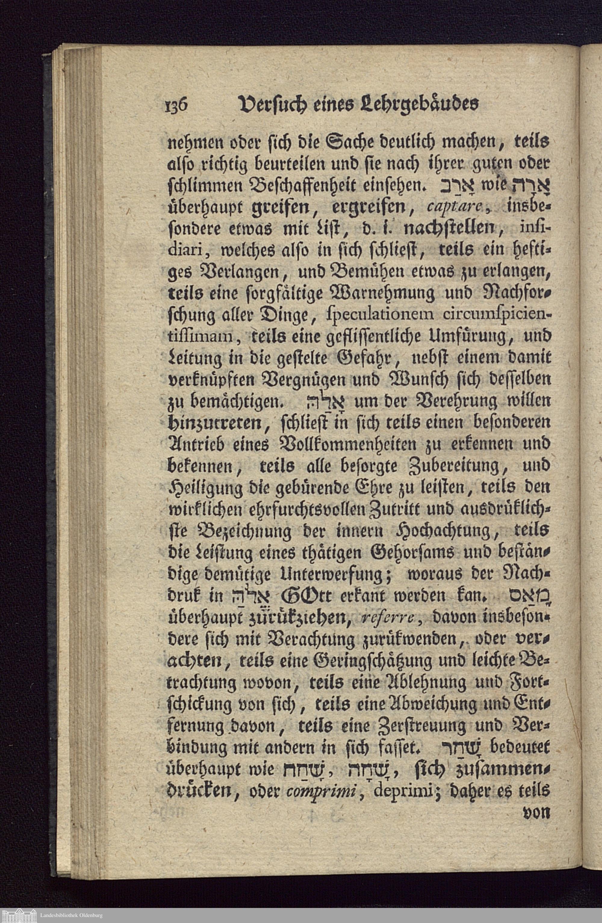 Versuch eines Lehrgebäudes der Ebräischen Sprache : worin teils die ersten Grundsätze der Grammatik, teils die eigentliche Beschaffenheit einer ebräischen Rede ... gezeiget werden : nebst einer Vorstellung der chaldäischen, syrischen und arabischen Sprache selbst / von M. Christian Gottfried Hase