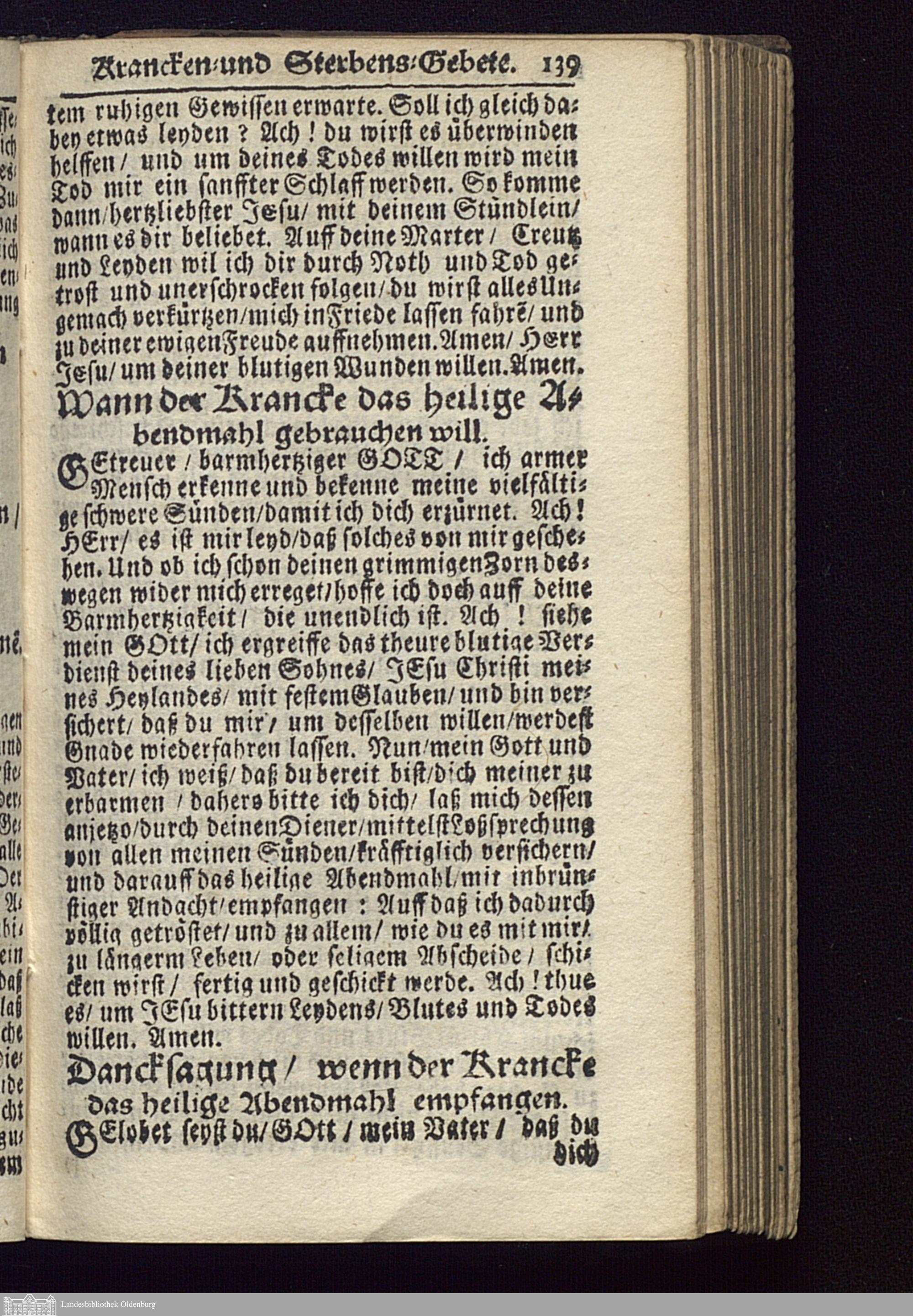 Oldenburgisches Gesang-buch, Darinnen Alte und neue, jedoch insgesam[m]t auff lauter bekandte Melodeyen abgefassete geistreiche Lieder zu finden, Welche Noch mit einem neuern Anhange vermehret worden : Sam[m]t einem Gebetbuche, Beide auff alle Fälle möglichst eingerichtet