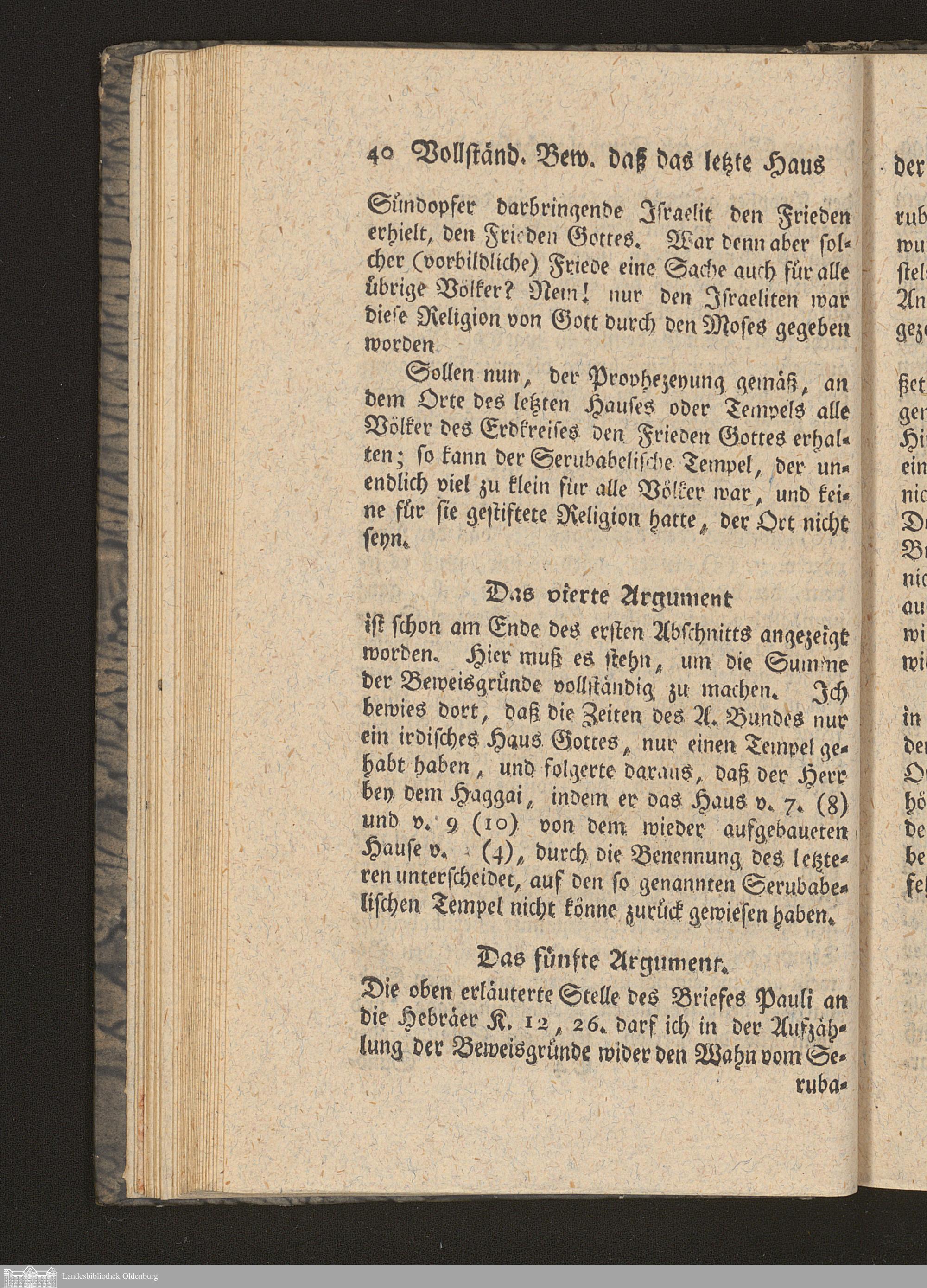 Fünfter Abschnitt. Beantwortung einer mit vorgelegten Einwendung gegen meine Behauptung der vorbildlichen Eigenschaft der Stiftshütte oder des Tempels, und Erklärung des Haggai K. 2, 3 (4). 7 (8) und 9 (10).