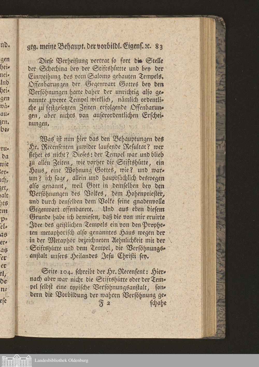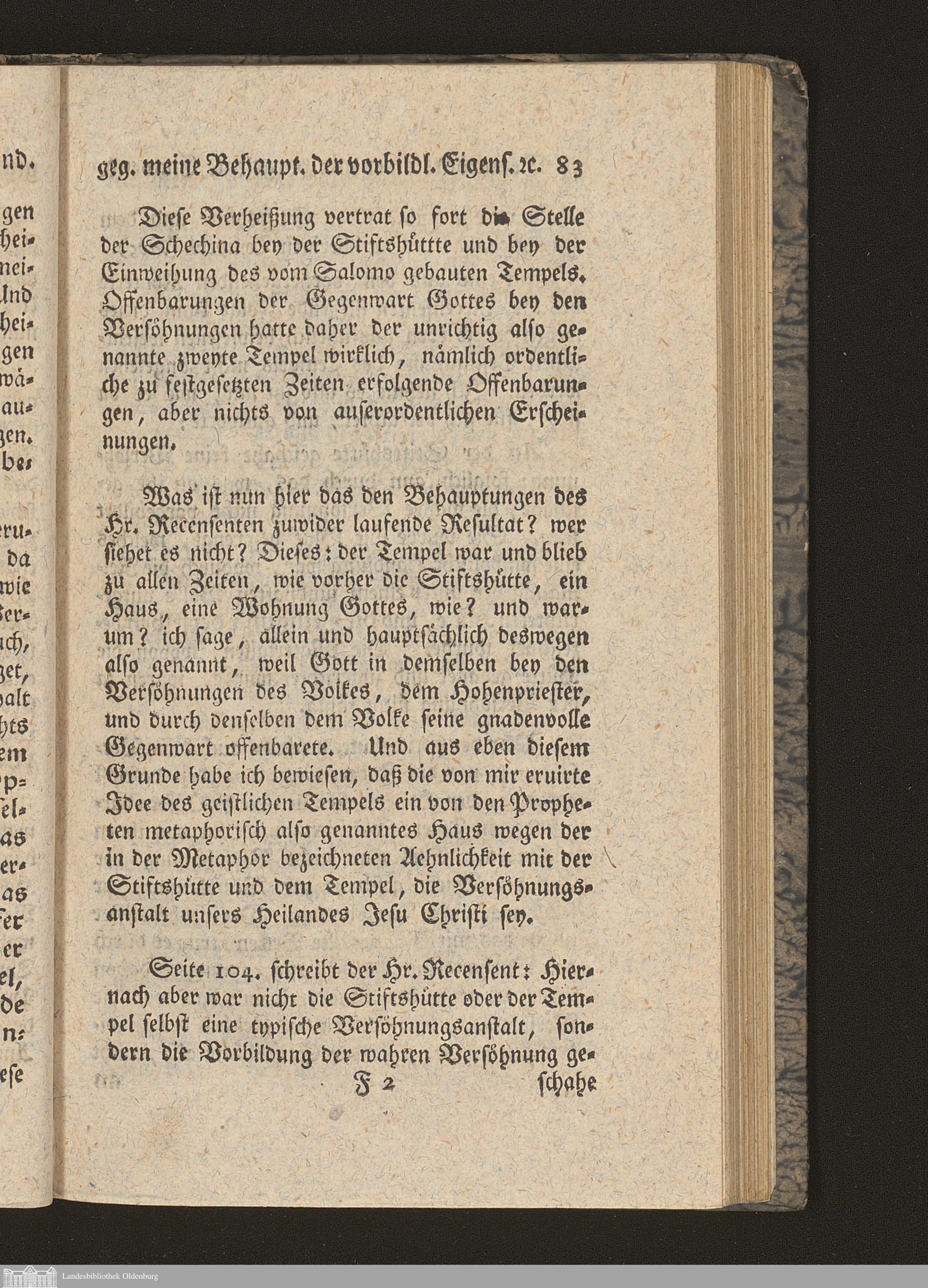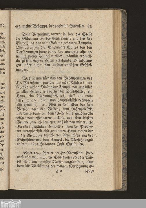 Fünfter Abschnitt. Beantwortung einer mit vorgelegten Einwendung gegen meine Behauptung der vorbildlichen Eigenschaft der Stiftshütte oder des Tempels, und Erklärung des Haggai K. 2, 3 (4). 7 (8) und 9 (10).