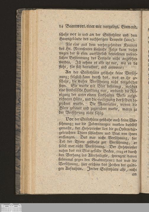 Fünfter Abschnitt. Beantwortung einer mit vorgelegten Einwendung gegen meine Behauptung der vorbildlichen Eigenschaft der Stiftshütte oder des Tempels, und Erklärung des Haggai K. 2, 3 (4). 7 (8) und 9 (10).