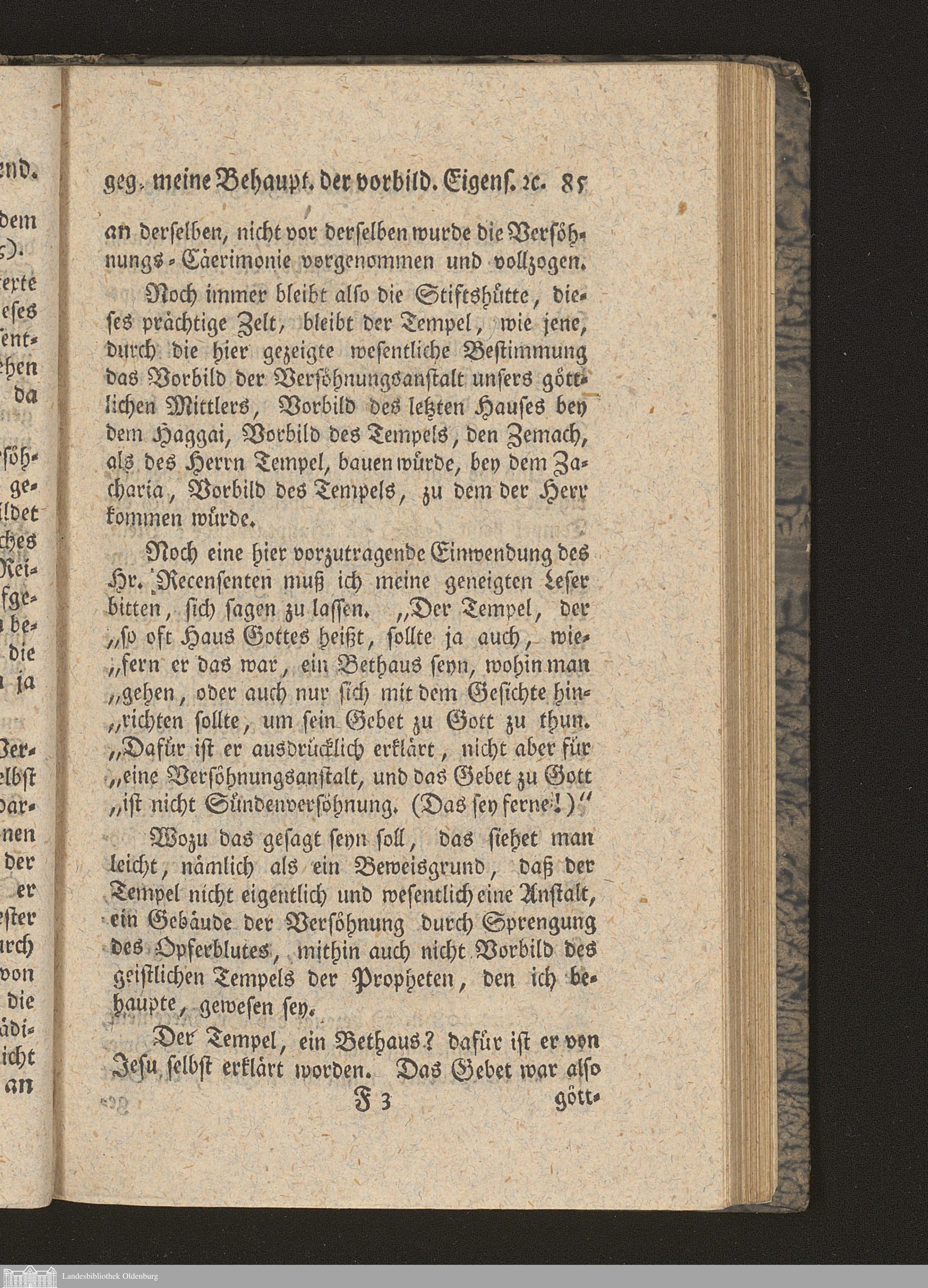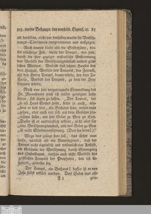 Fünfter Abschnitt. Beantwortung einer mit vorgelegten Einwendung gegen meine Behauptung der vorbildlichen Eigenschaft der Stiftshütte oder des Tempels, und Erklärung des Haggai K. 2, 3 (4). 7 (8) und 9 (10).