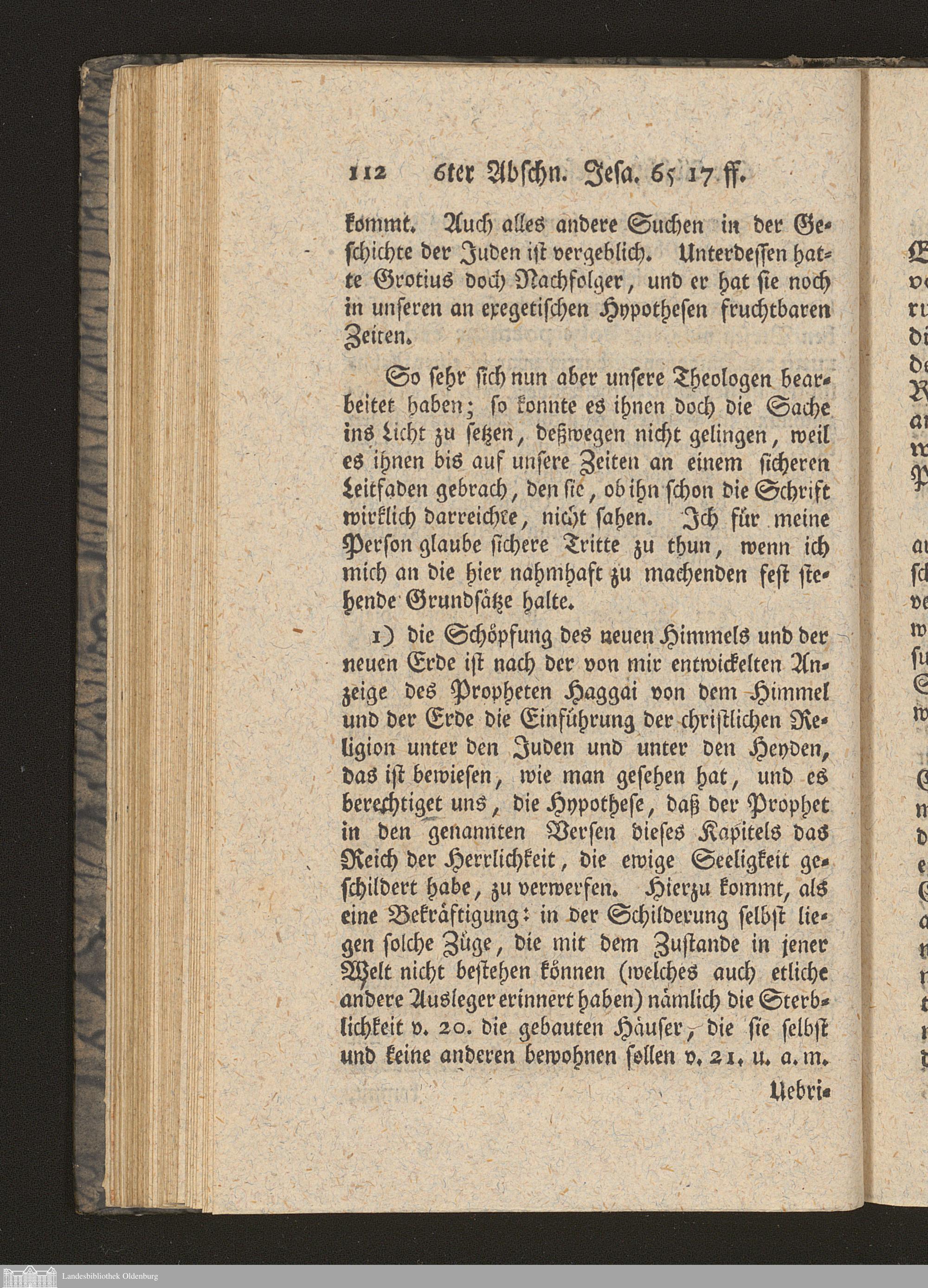 Sechster Abschnitt. Von der Bedeutung des Himmels bey den Propheten , z. B. bey dem Jesaias K. 65., 17 ff. eine ausführliche Erklärung dieser Stelle.