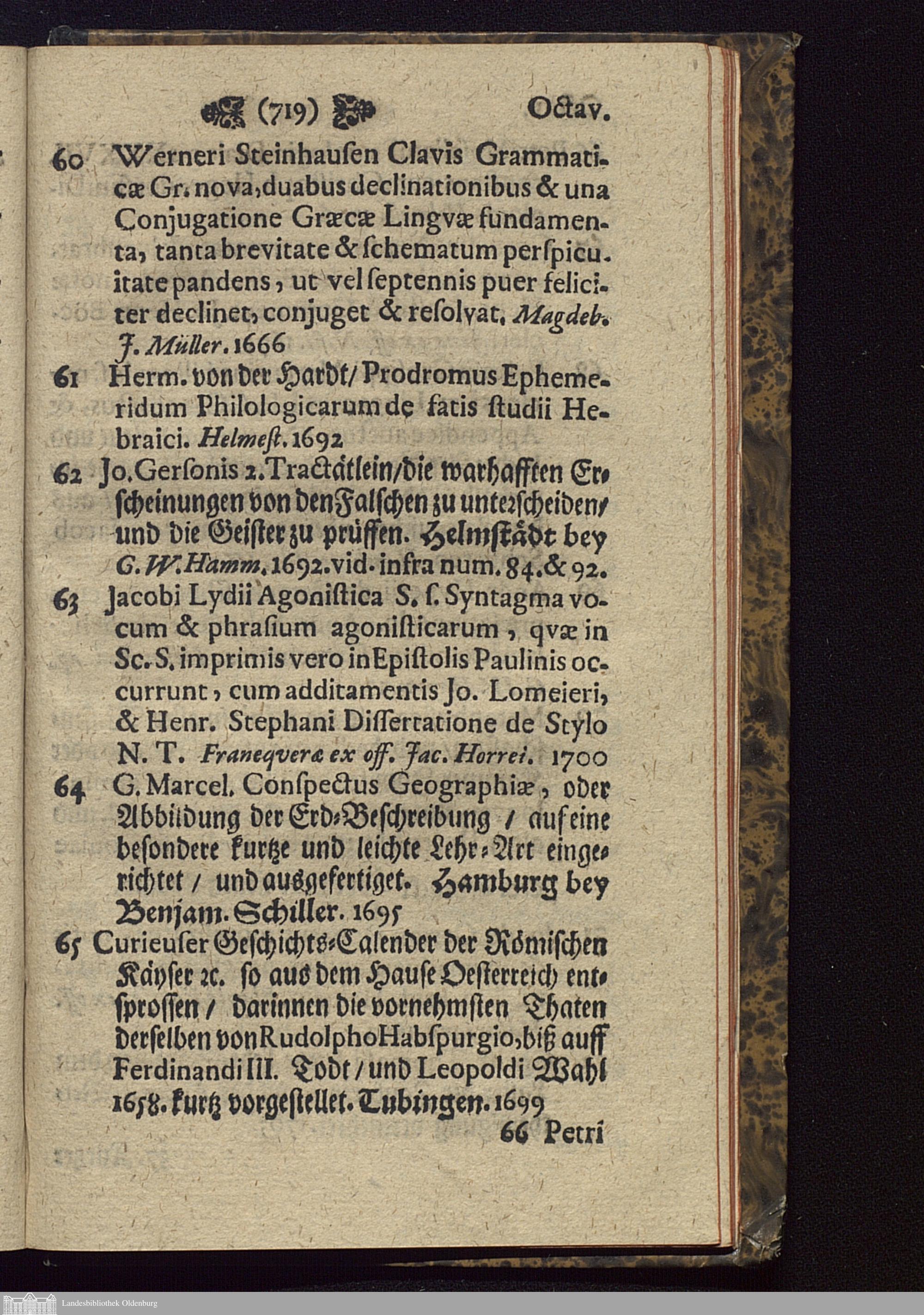 Des weyland berühmten Polyhistoris Herrn M. Antonii Gverneri Cunonis, Alten 40. Jährigen Rectoris des Gymnasii zu Magdeburg/ Bibliothec Von allerhand kostbaren/ und meist raren/ sowohl Theologischen/ als andern vielen fürtrefflichen/ Historischen und Philologischen Büchern : soll ... alhier in Leipzig Den 27. Augusti u. s. f. 1708 ... verauctioniret werden
