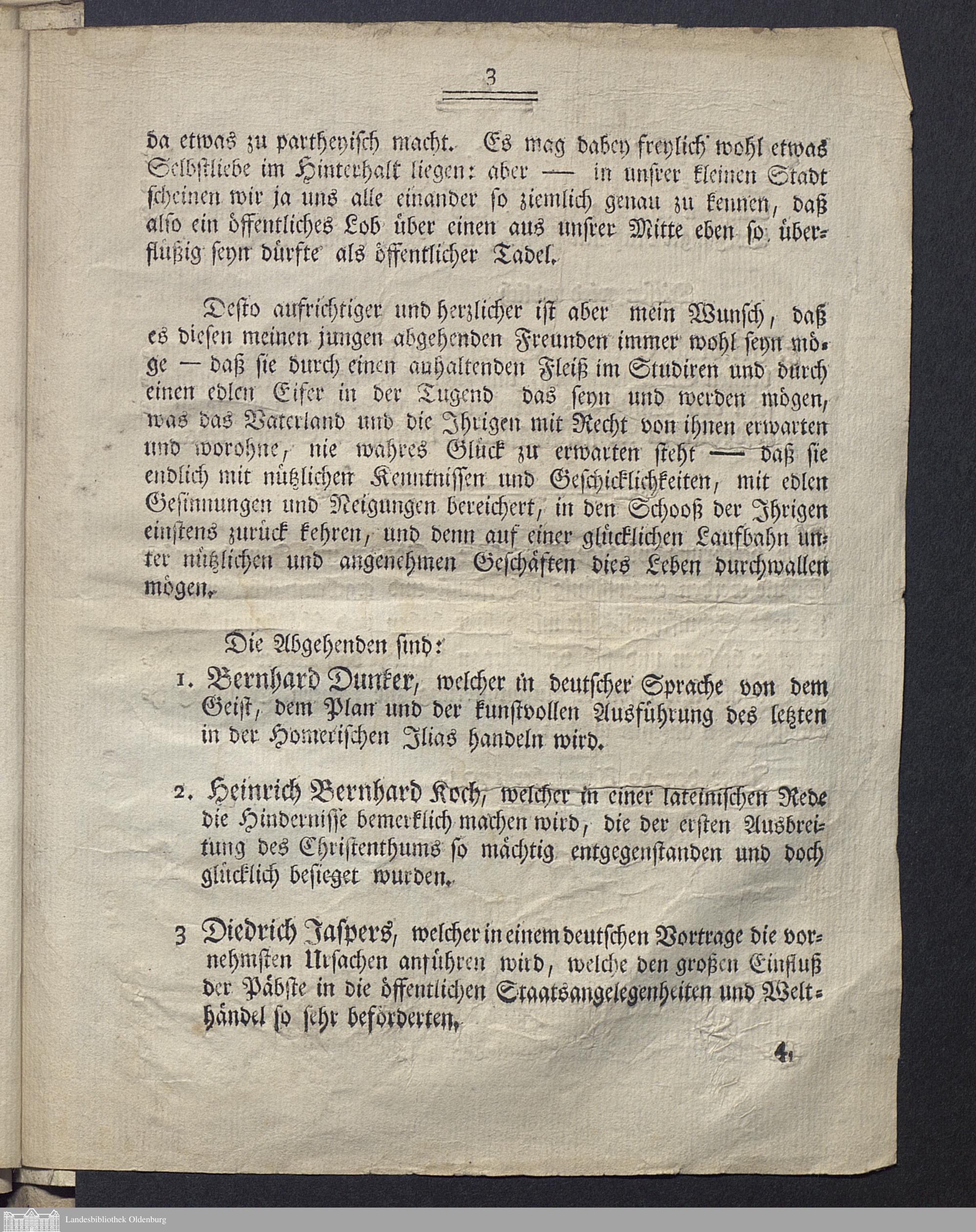 [Einladung zu einer auf den 18 Sept. d. J. ... angesetzten Abschieds-Feierlichkeit auf der Provinzial-Schule zu Jever]