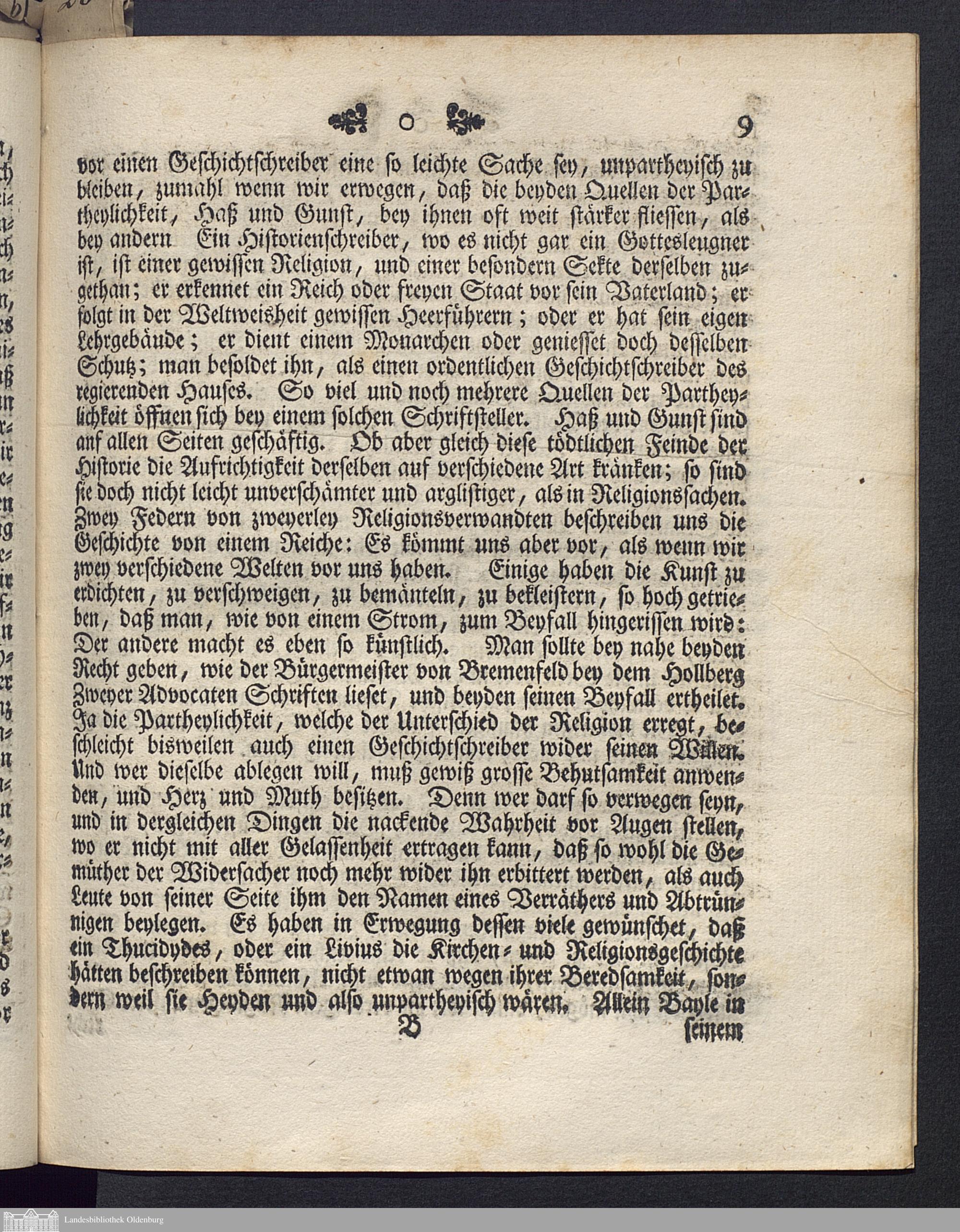 Versuch eines Beweises, daß die Unpartheylichkeit eines Geschichtsschreibers eine schwere Sache sey : wobey alle hohe Gönner und vornehme Freunde der hiesigen Schule zu gnädiger und hochgeneigter Anhörung einer deutschen Abschiedsrede welche den 21. Septemb. ... gehalten werden wird ... einladet / Johann Michael Herbart, Rector der Schule