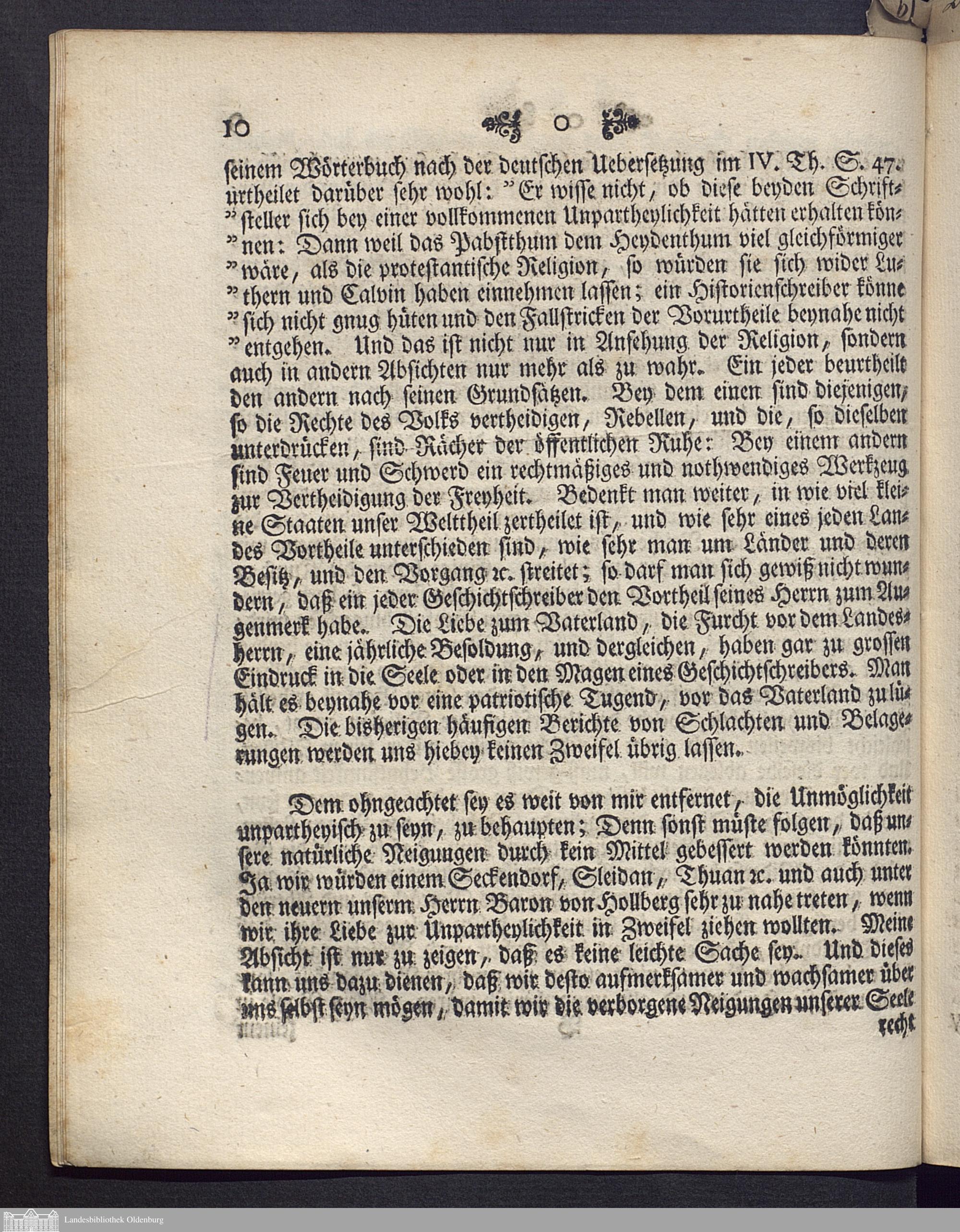 Versuch eines Beweises, daß die Unpartheylichkeit eines Geschichtsschreibers eine schwere Sache sey : wobey alle hohe Gönner und vornehme Freunde der hiesigen Schule zu gnädiger und hochgeneigter Anhörung einer deutschen Abschiedsrede welche den 21. Septemb. ... gehalten werden wird ... einladet / Johann Michael Herbart, Rector der Schule